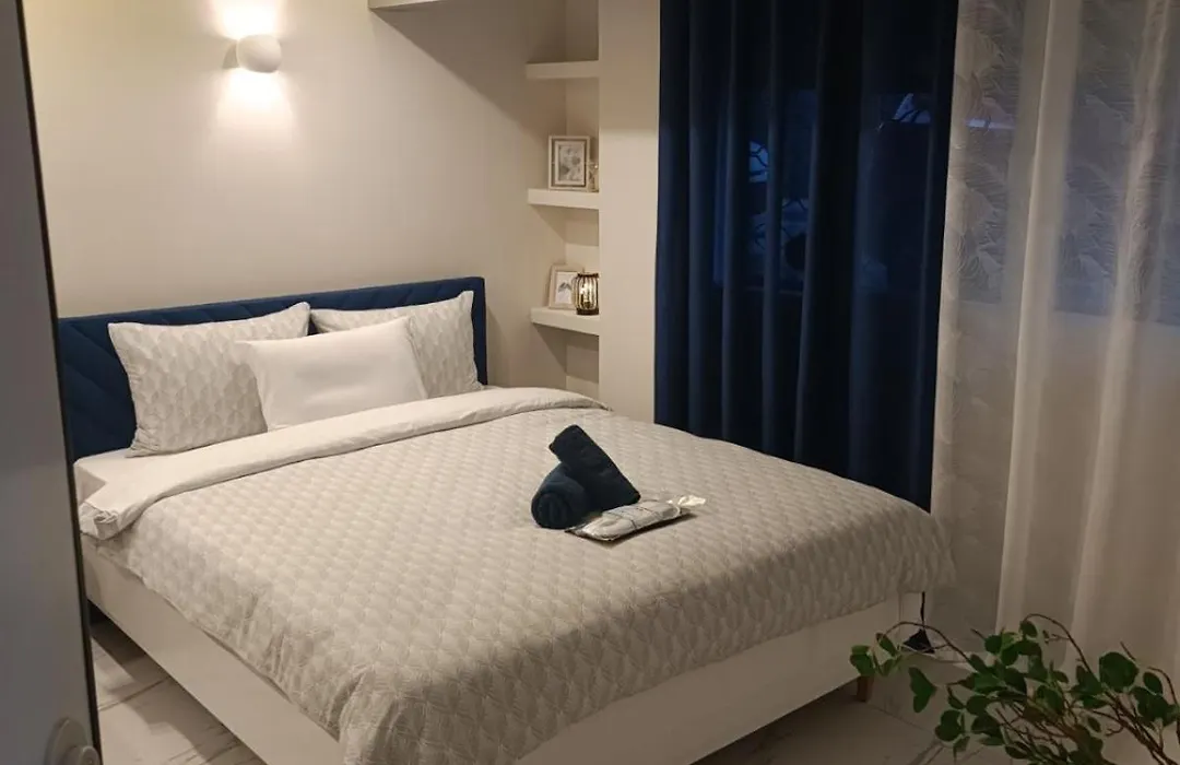 Det er et udstyret køkken udstyret med et køleskab og en kogeplade. Gæster indkvarteres inden for 5 km fra Thessaloniki lufthavn.